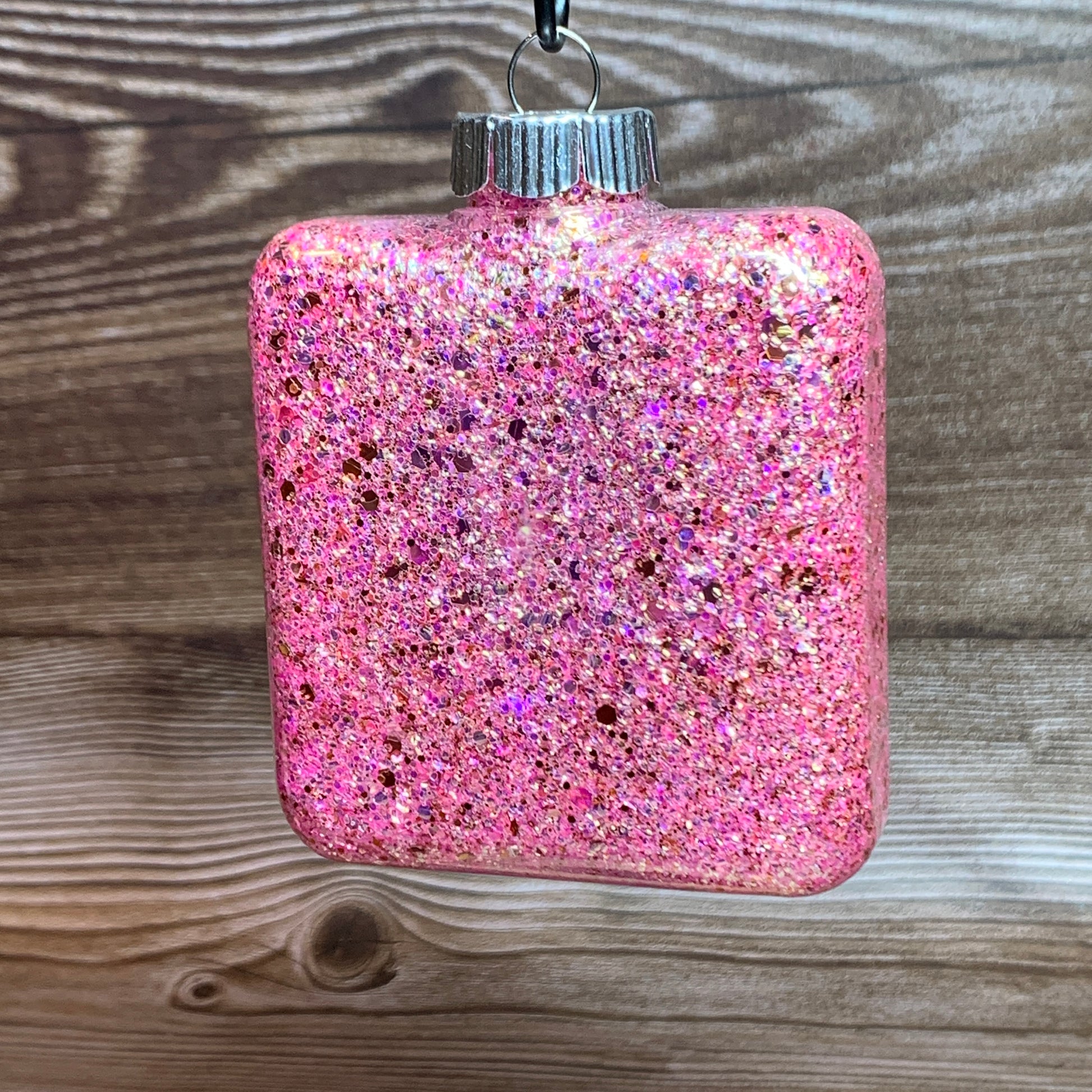 The Square Ornament was treated with a Pink Glitter coating on the inside, metallic pink, brown & bronze Acrylic Paint on the exterior to create the dotted mandala design.