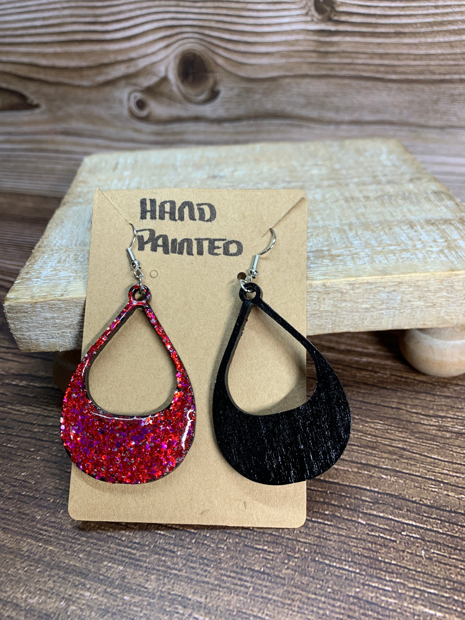 I Hand Painted these 1/4" Wood Earrings using Red Glitter Acrylic paint.