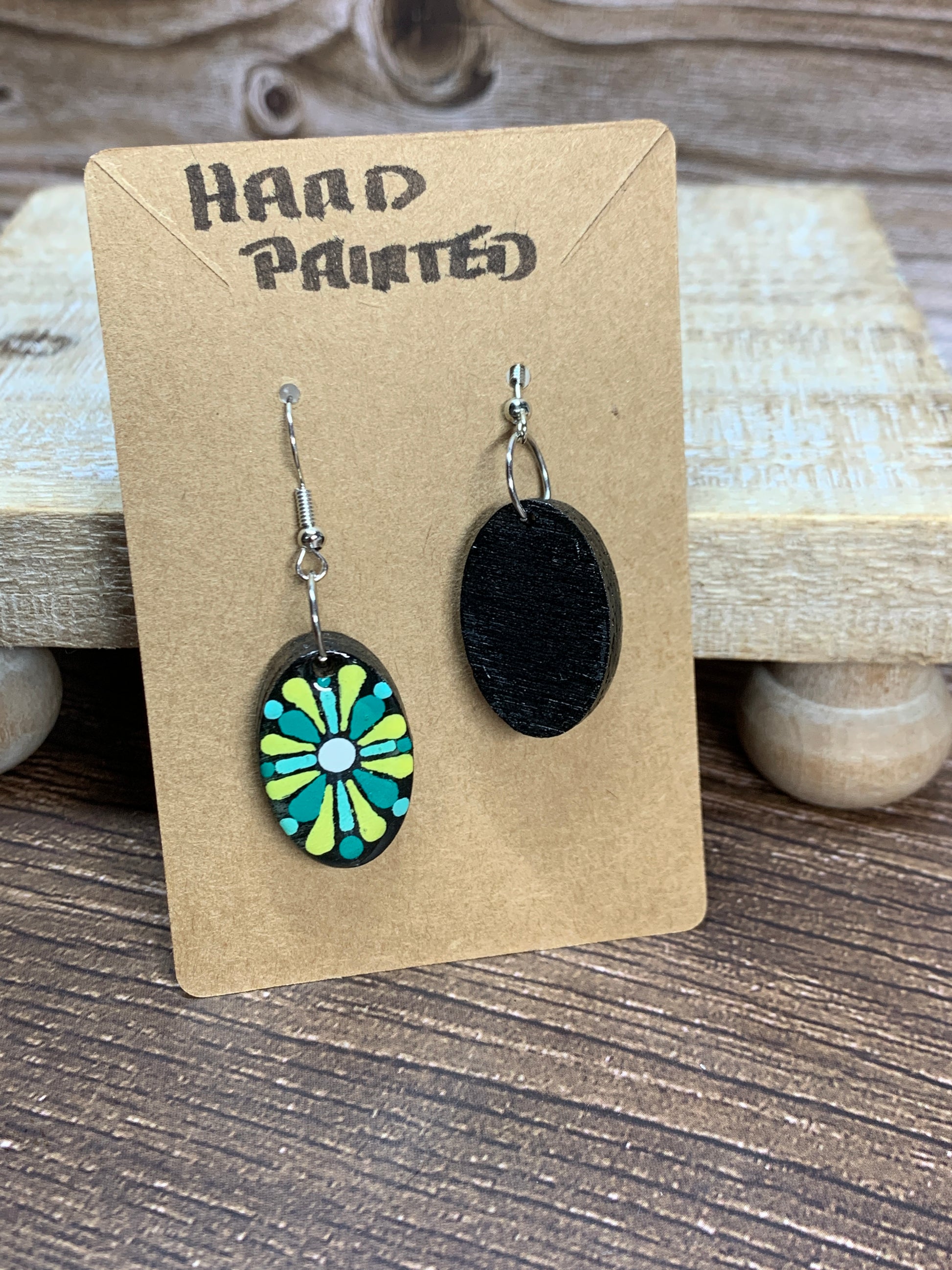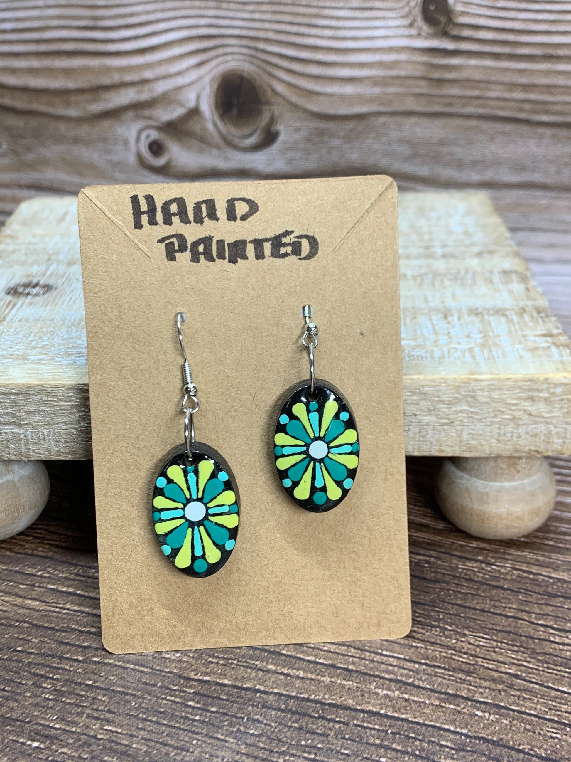 I Hand Dotted these 1/4" Wood Earrings using shades of Green and White Acrylic paint.