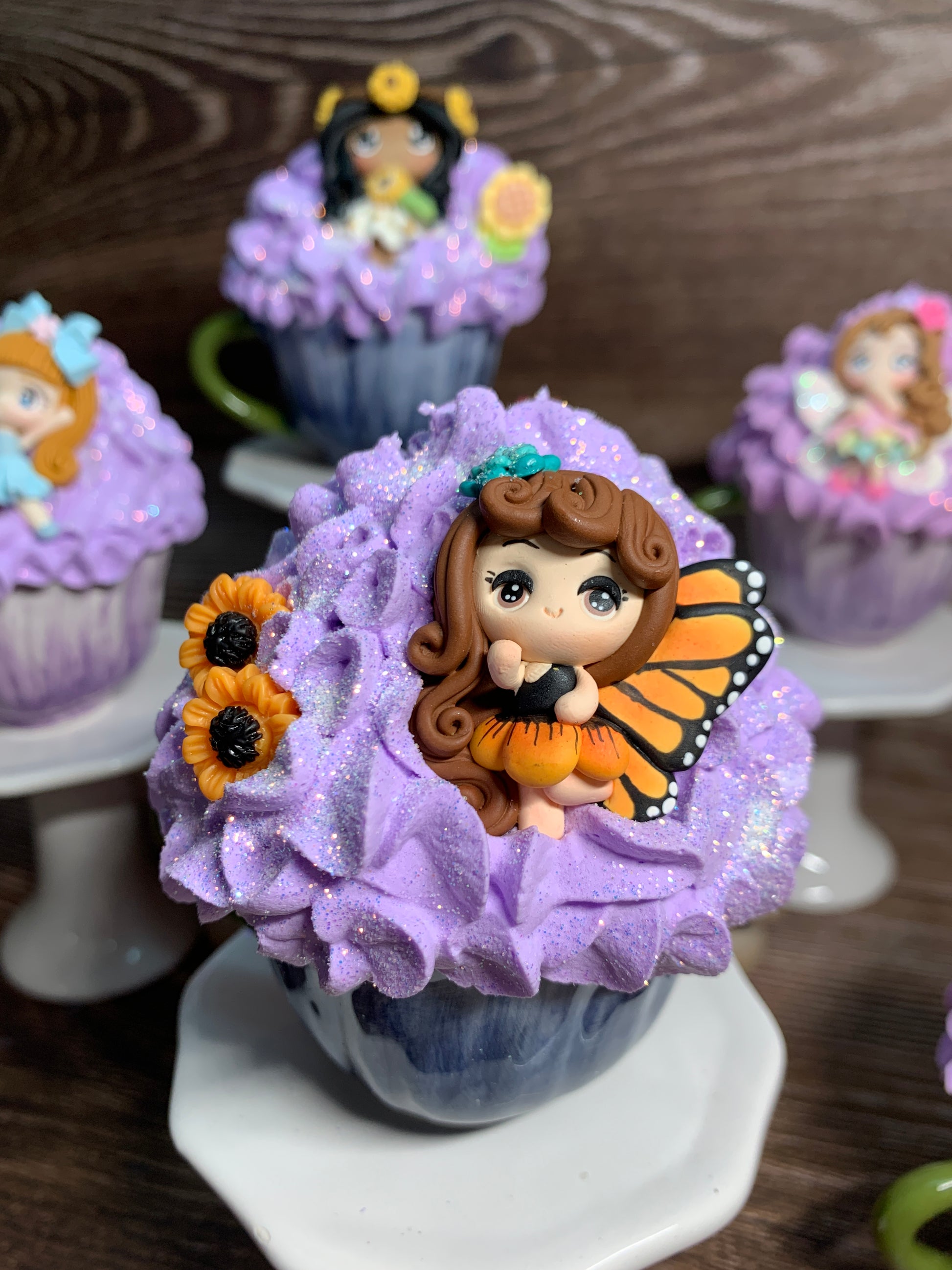 Add a sprinkle of whimsy to your home with our Fairy Garden Mini Mugs! These beautiful miniature ceramic tulip cups are filled with faux whipped cream and feature gorgeous handmade polymer clay fairies and ballerinas. Perfect for adding a touch of magic to your spring and summer tier tray decor.