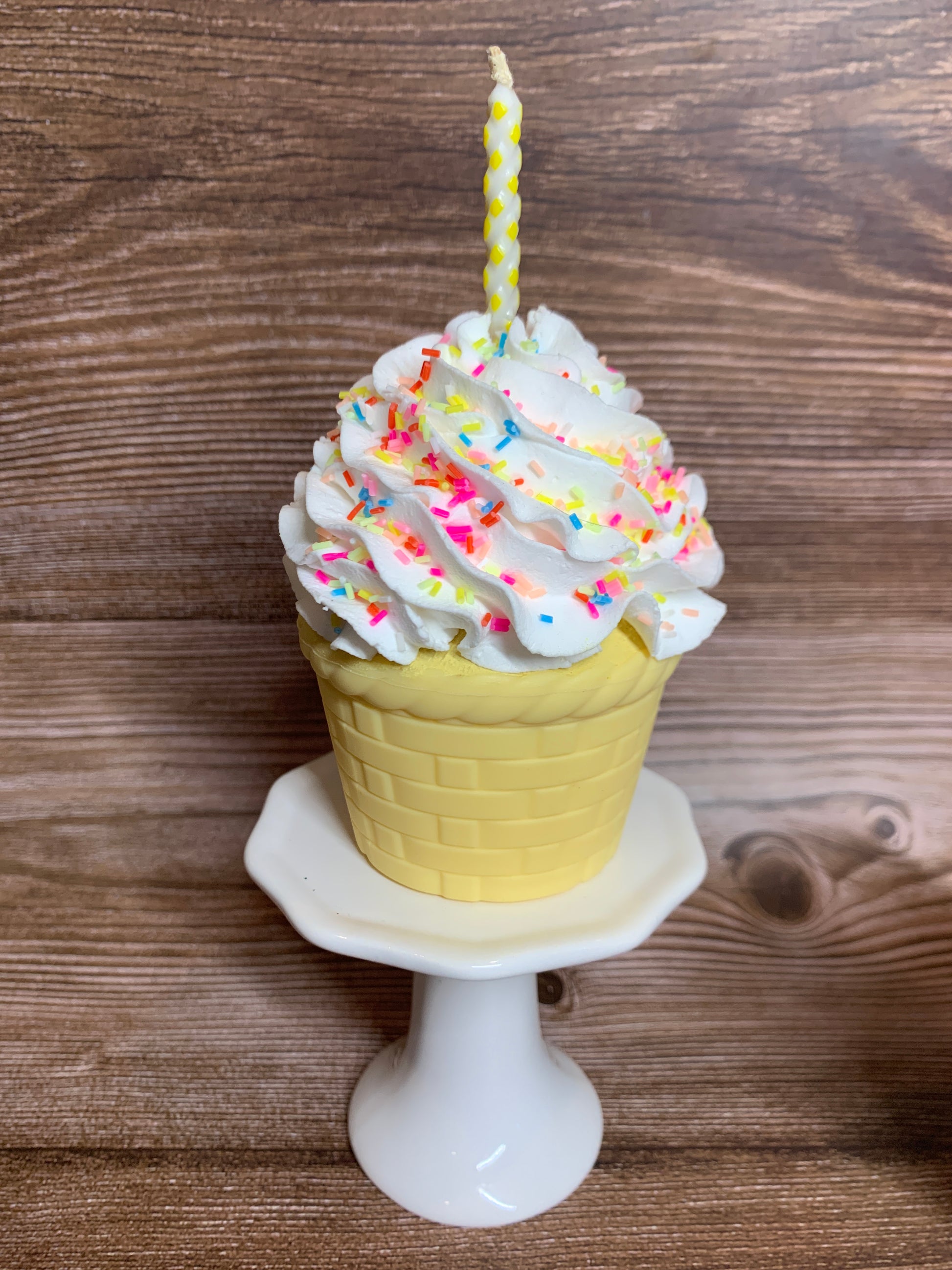 Yellow cupcake 3β x 5 1/2β x 2β at base