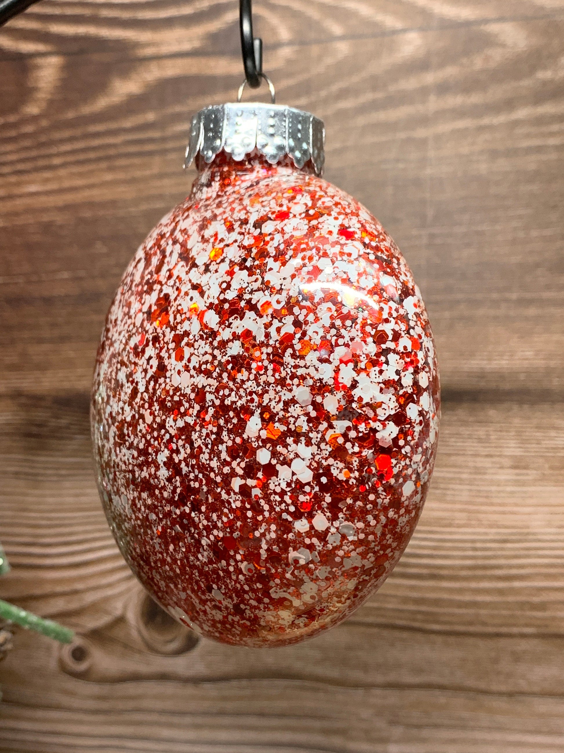 Materials: shatter proof ornament,glitter,paint,varnishh