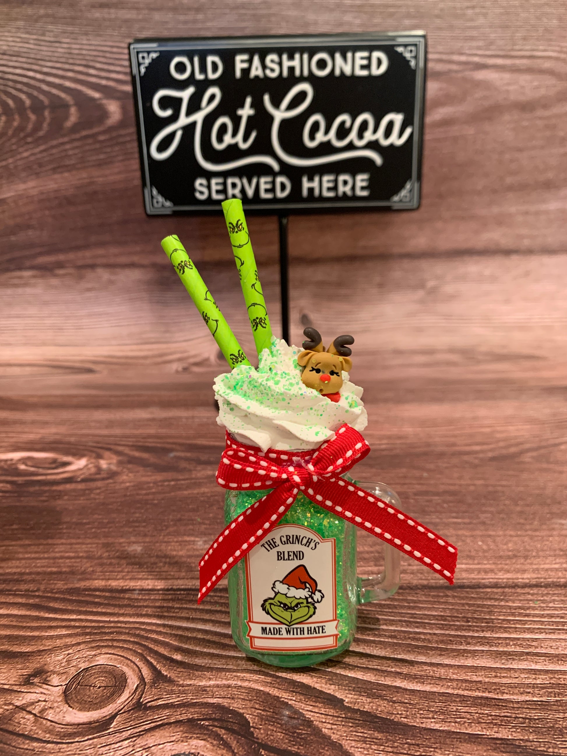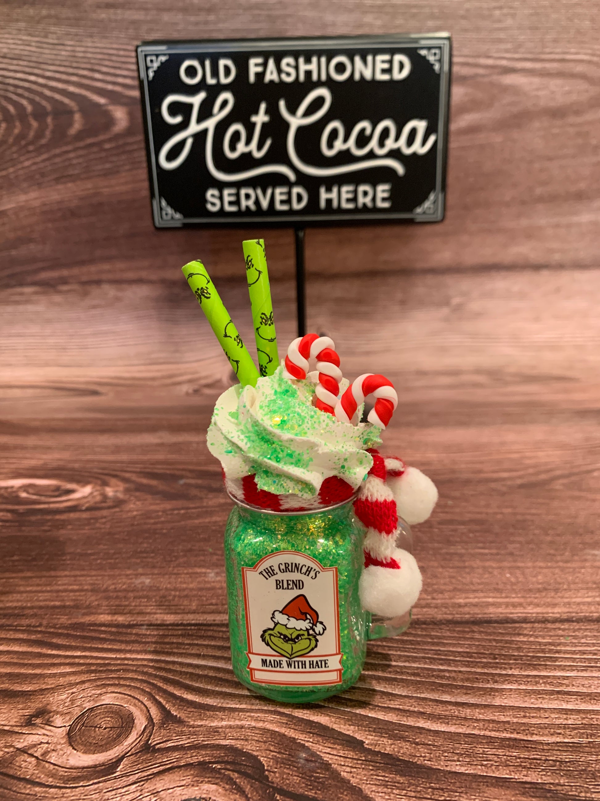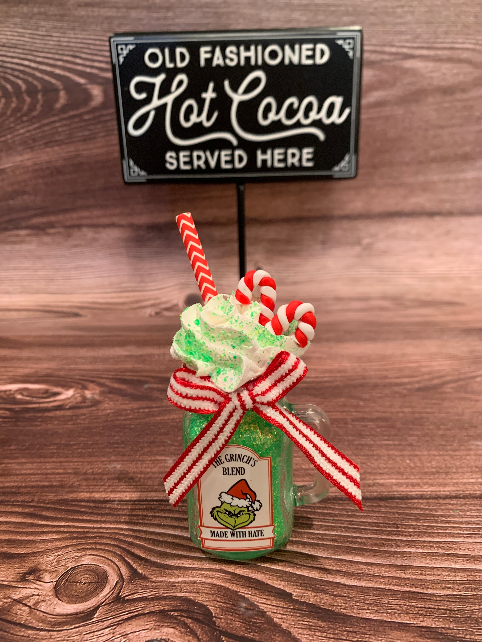 Add a touch of whimsy to your tier tray or shelf with these Green Man Mini Mugs! Perfectly petite, each mug features faux coffee topped with whipped cream, bringing cozy café vibes without the spill. Ideal as a charming ornament or playful decor accent, these mini mugs brighten any space with a splash of green and a dollop of fun.