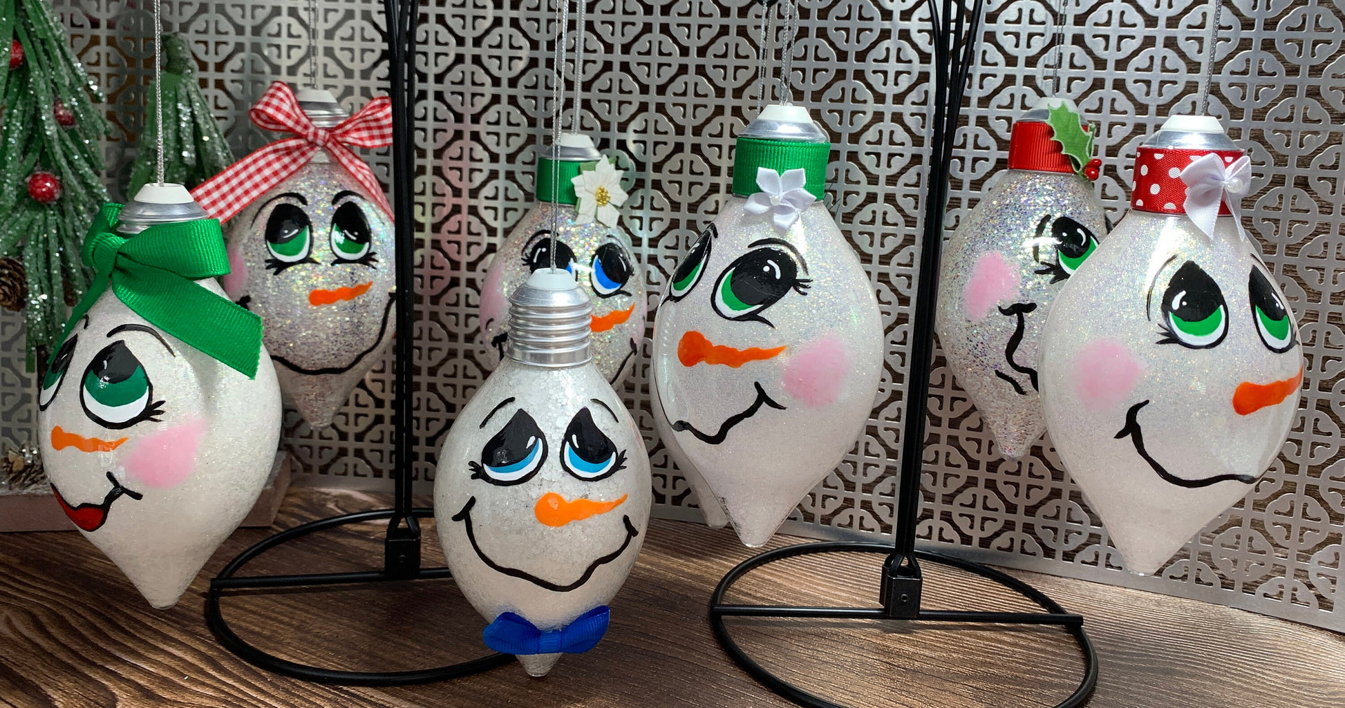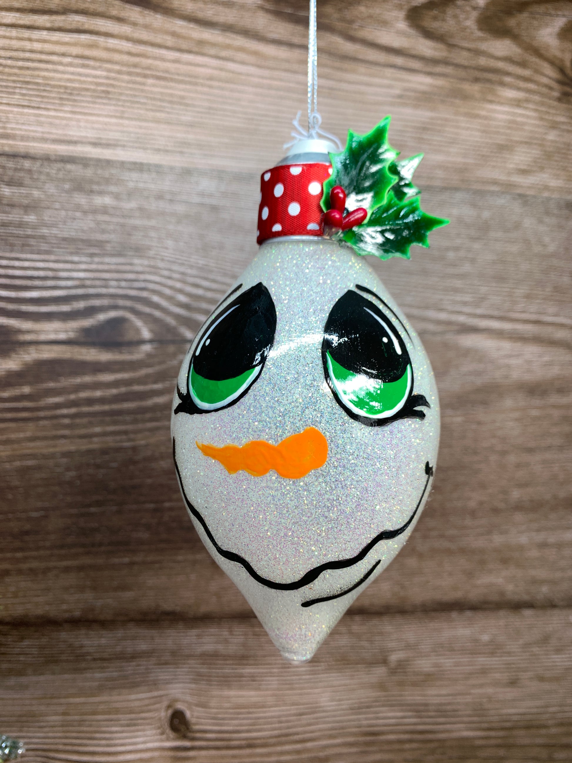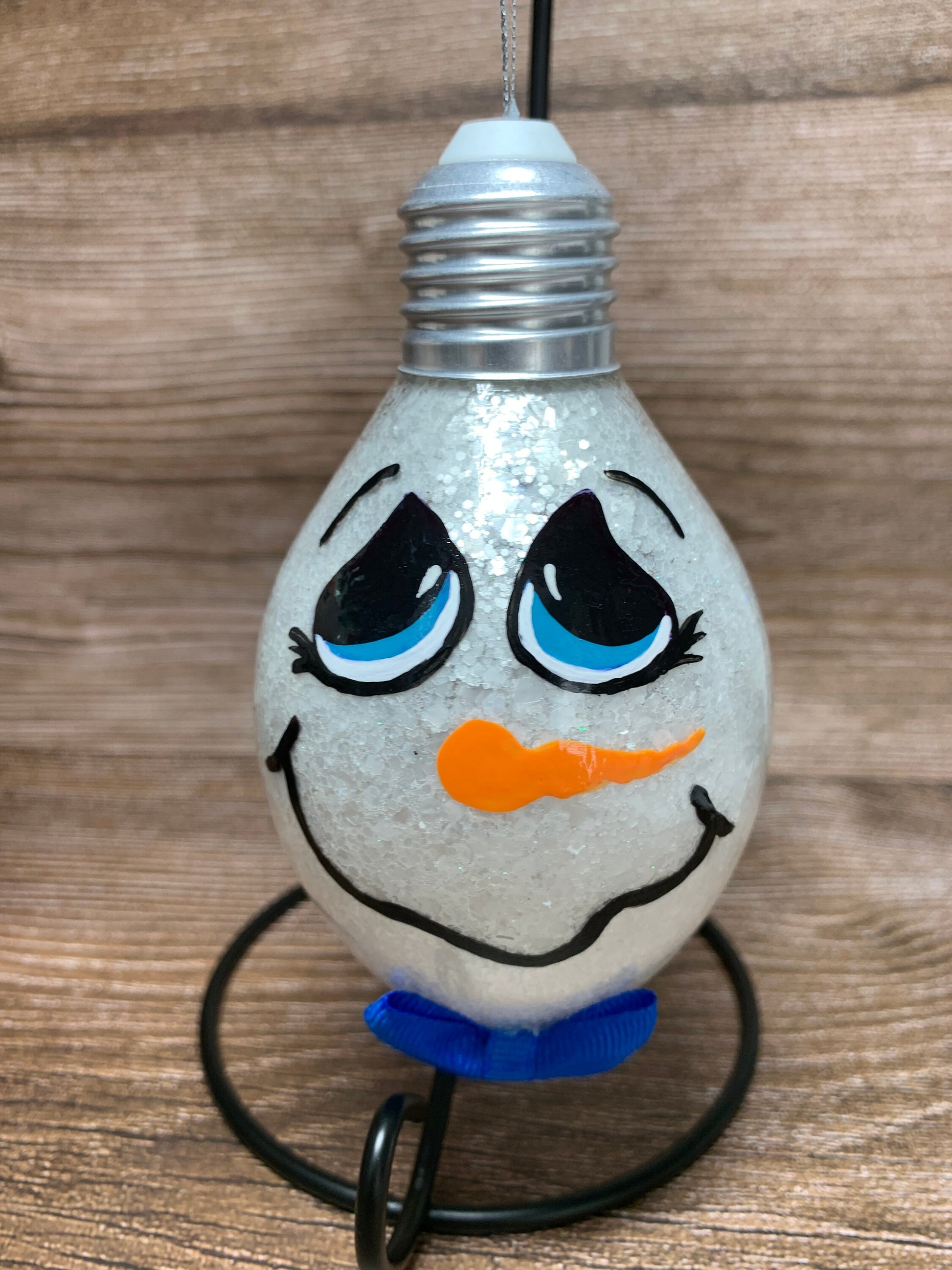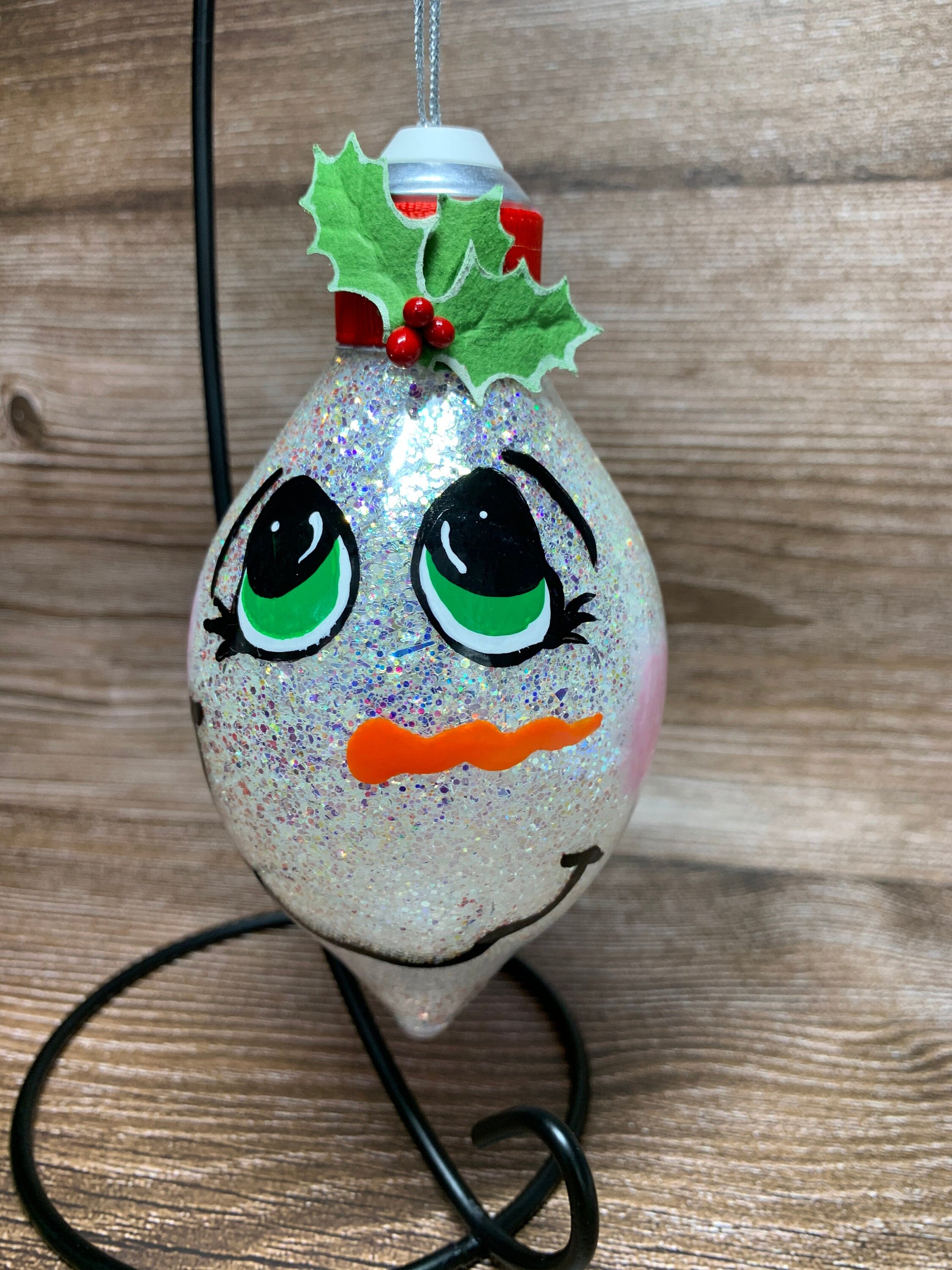These Shatterproof light bulb ornaments are glittered on the inside and individually hand painted using acrylic paint, two layers of glossy varnish is then applied to protect the painted finish.