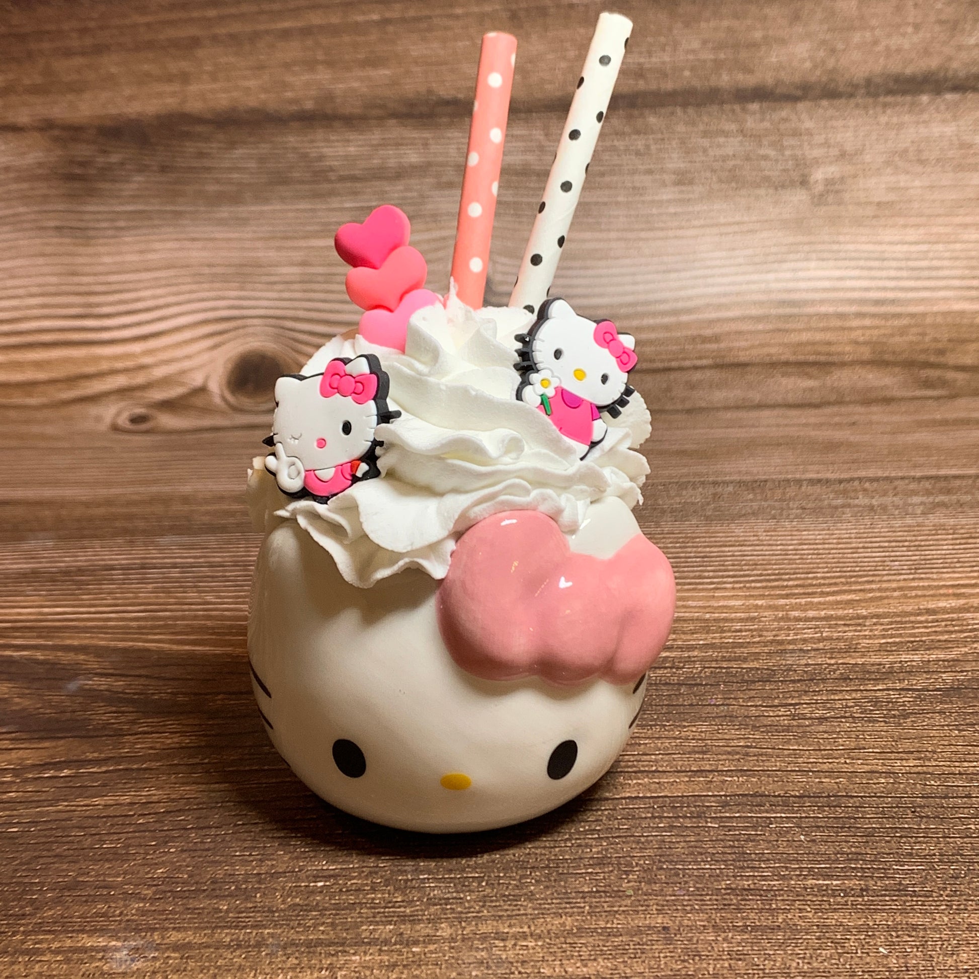 Materials: faux whipped cream,ceramic mug,ribbon,decorations,paper straws