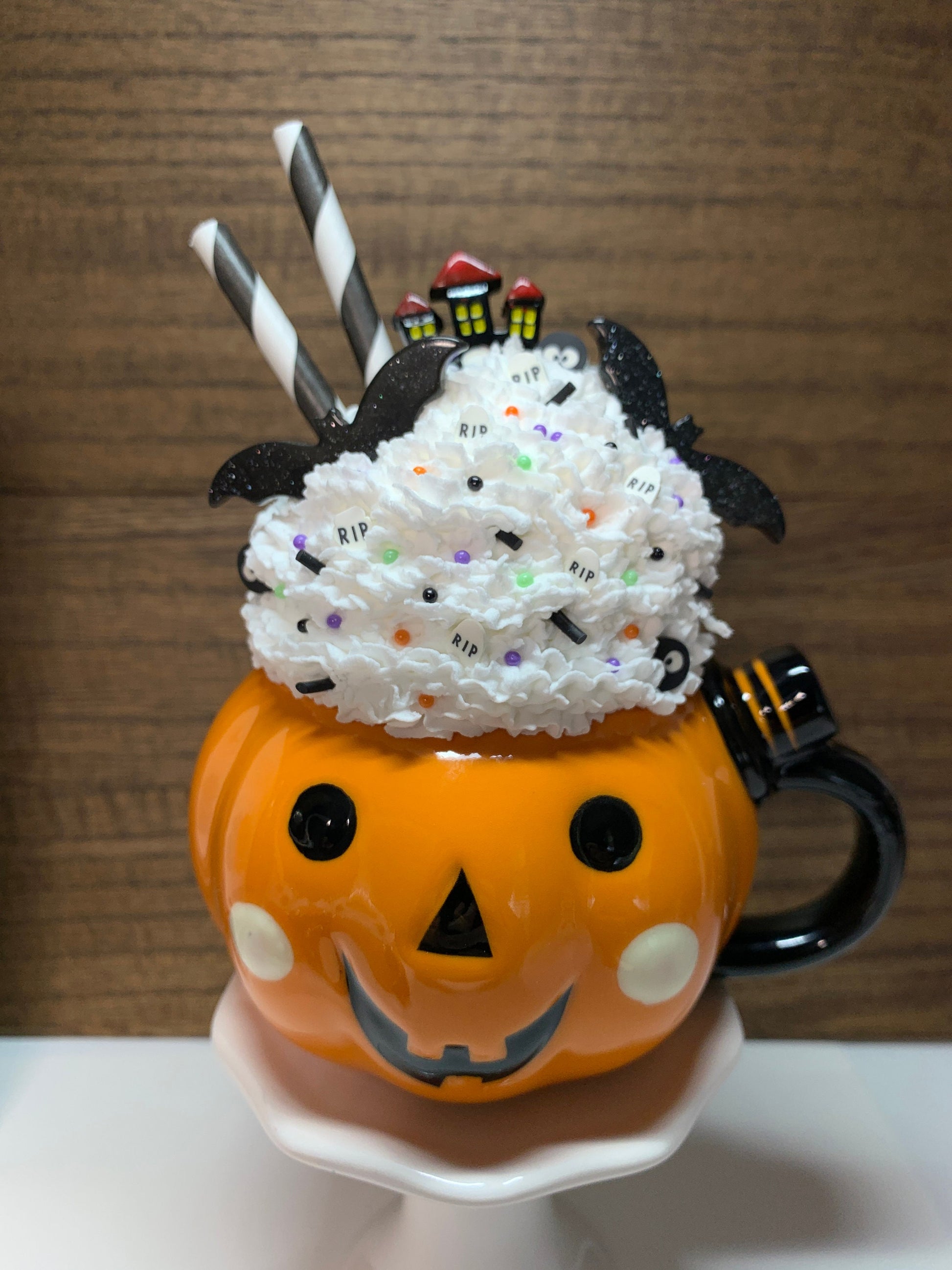 Materials: ceramic mug,faux whipped cream,paper straws,resin decorations,polymer clay