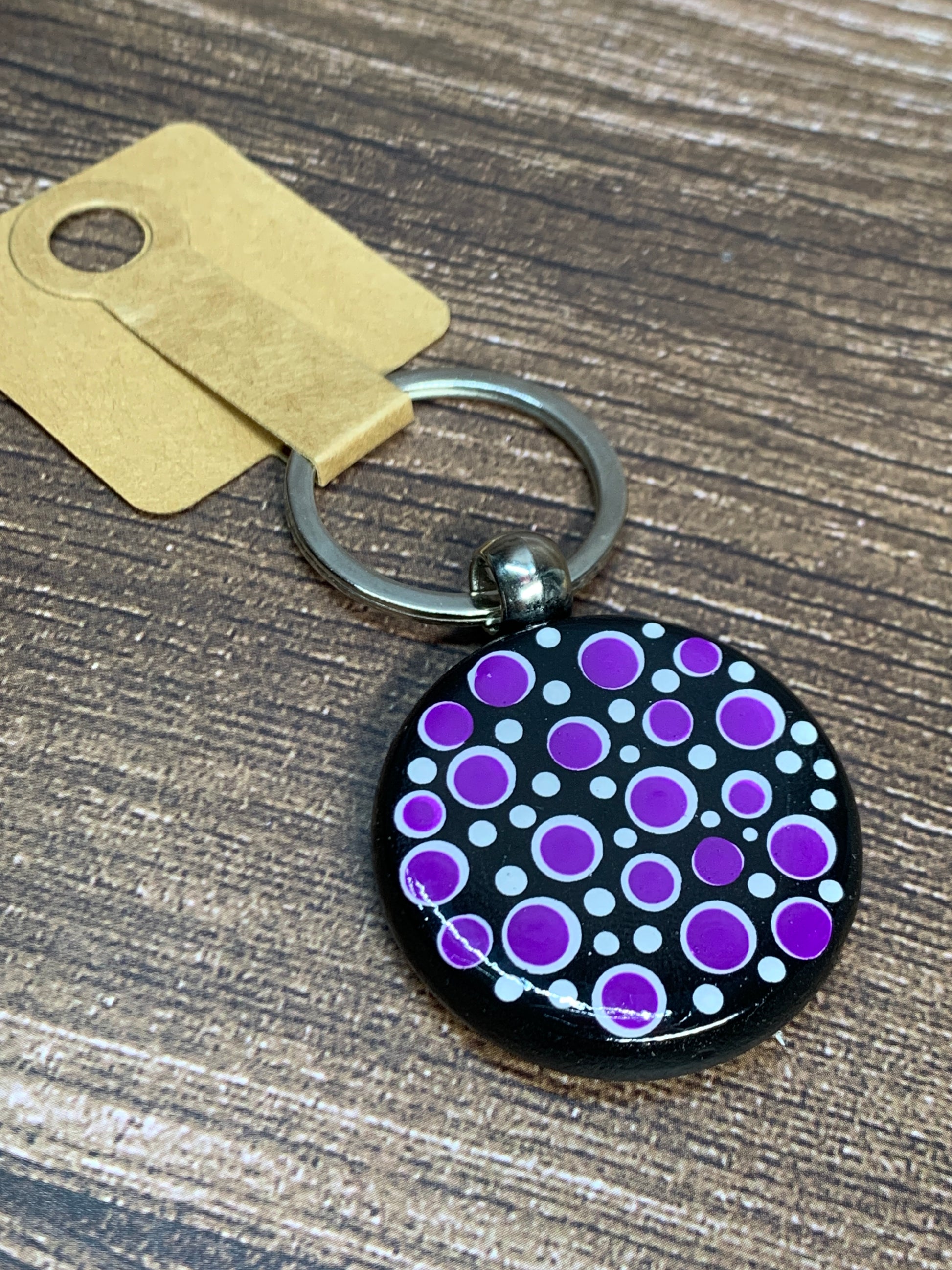 Our Dot Art Keychain is the unique finishing touch to your keys. Each keychain is handmade using wood and painted in the popular dot art style. The resin coating ensures your design stays vibrant, so you can stand out with style!