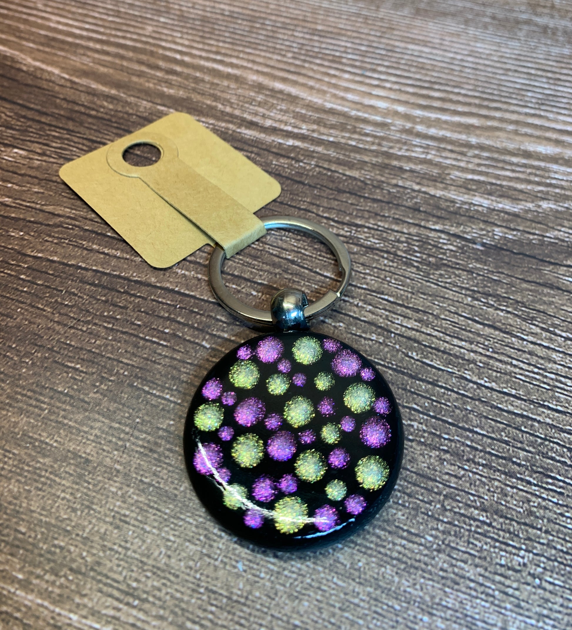 I Painted the design on this keychain using Green & Purple Shimmer acrylic paint.