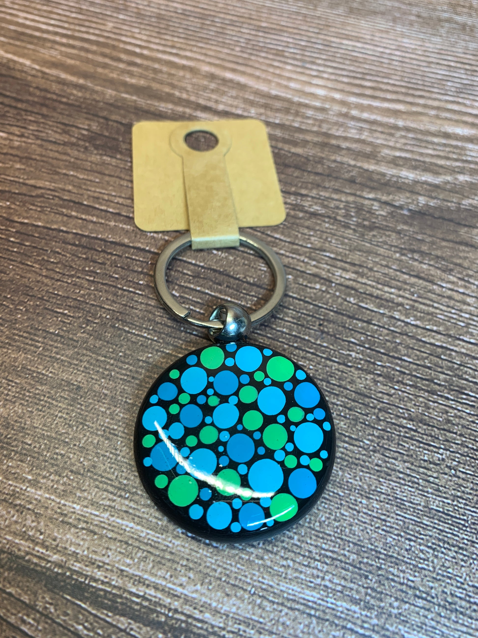 Our Dot Art Keychain is the unique finishing touch to your keys. Each keychain is handmade using wood and painted in the popular dot art style. The resin coating ensures your design stays vibrant, so you can stand out with style!