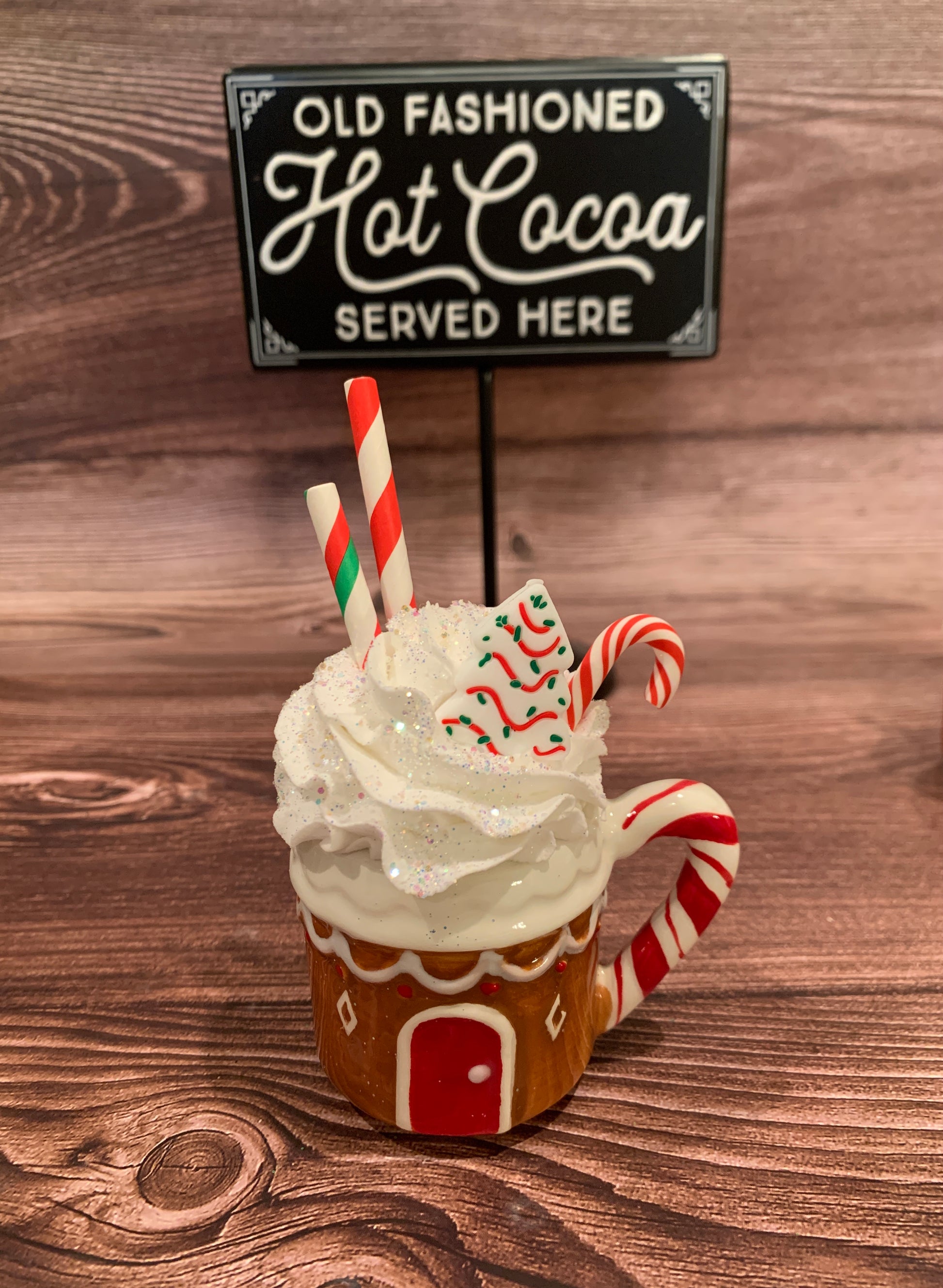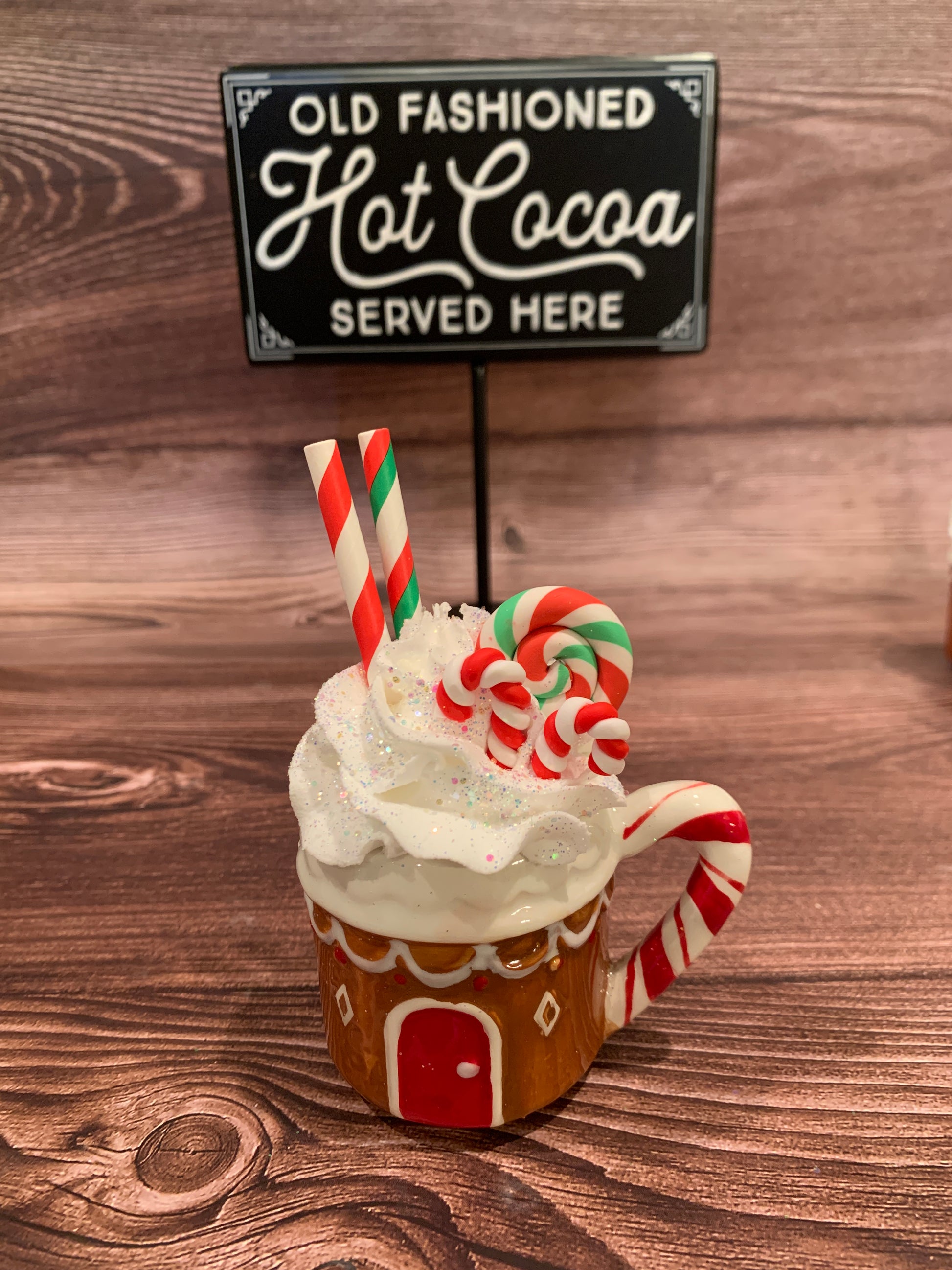 Add a sprinkle of festive fun with this Red Gingerbread Mini Mug! Featuring faux whipped cream and a pretend cup of cozy hot chocolate, it’s the perfect pint-sized treat for your holiday tier tray or as a charming ornament. Sweet, playful, and ready to bring cheer without a single sip!