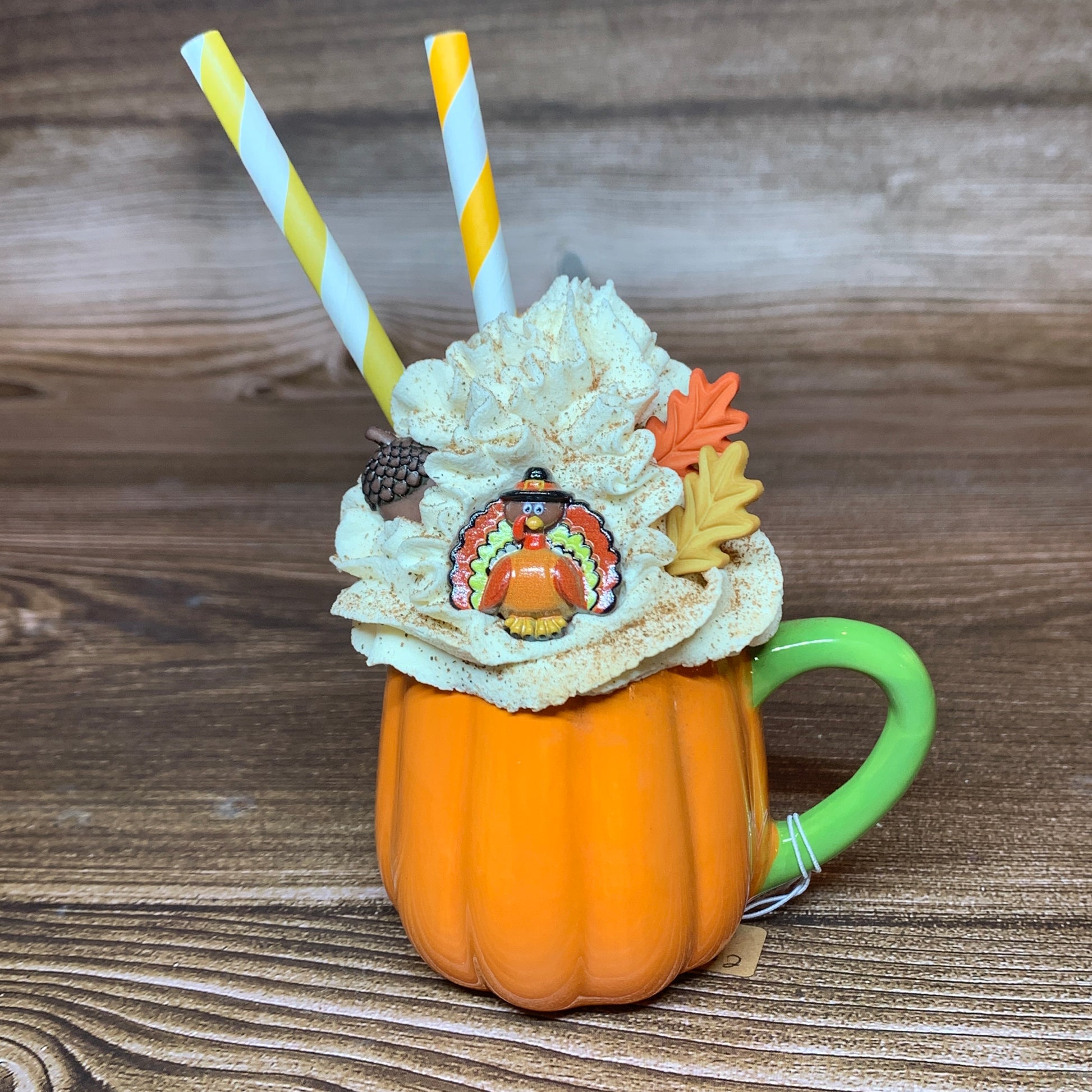 Pumpkin spice up your fall decor with our Orange Pumpkin Fall Mini Mug. Made of durable ceramic, each mini mug is overflowing with faux whipped cream and sprinkled with cinnamon. Perfect for your tier tray, coffee bar, or kitchen, these mini mugs will add a playful touch to your seasonal setup.