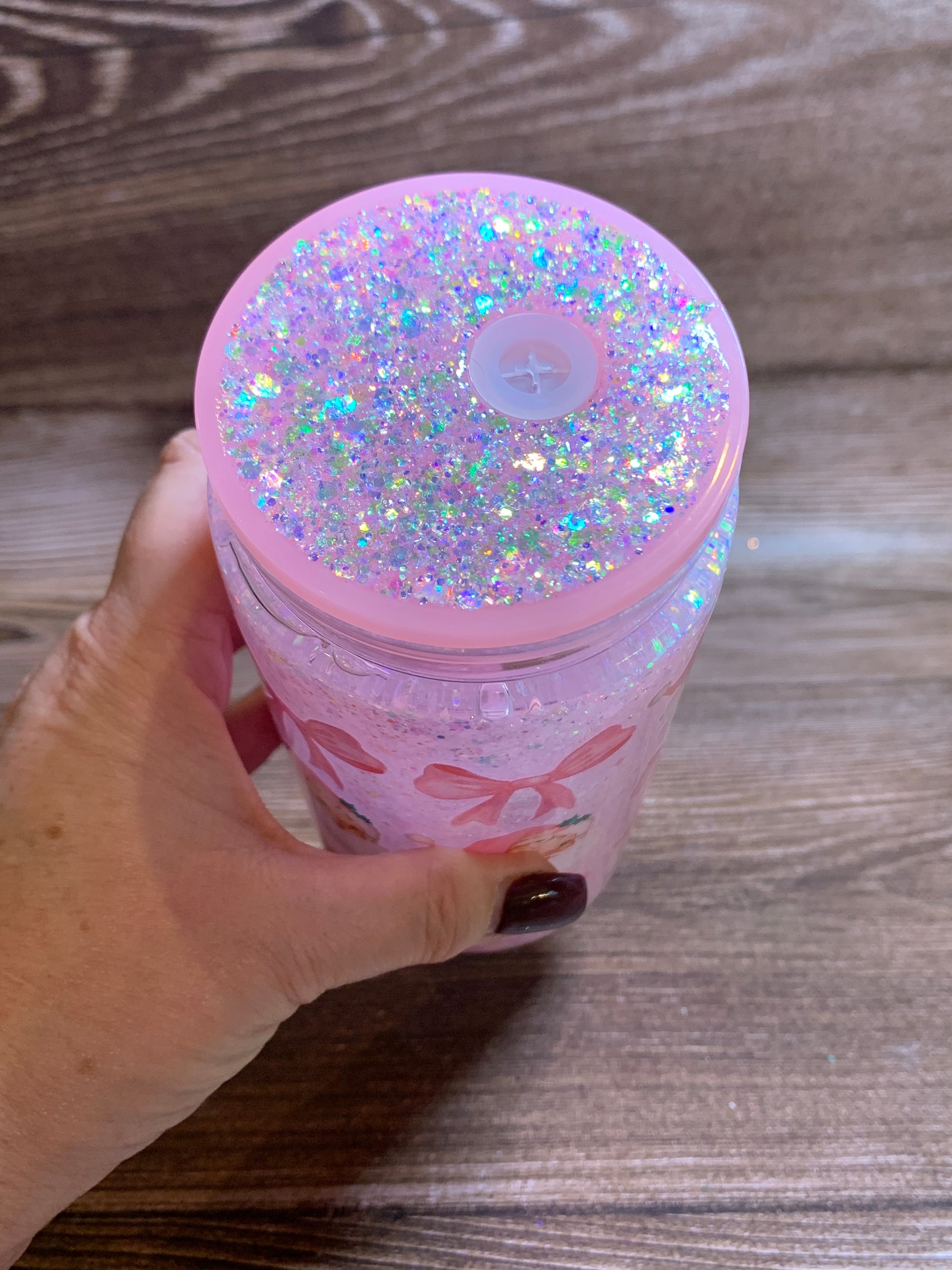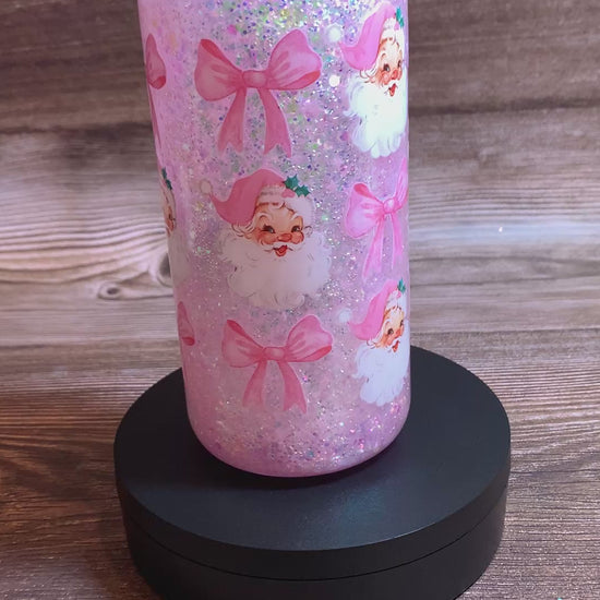 Get ready for the holidays with our Pink Santa Snowglobe Tumbler! This 20 ounce tumbler is perfect for keeping your drinks cold and showcasing your festive spirit. The pink glitter and UVDTF add a touch of glamour, while the pink bows and Santa design will make you stand out at any holiday party. Grab one now and sleigh all day long!
