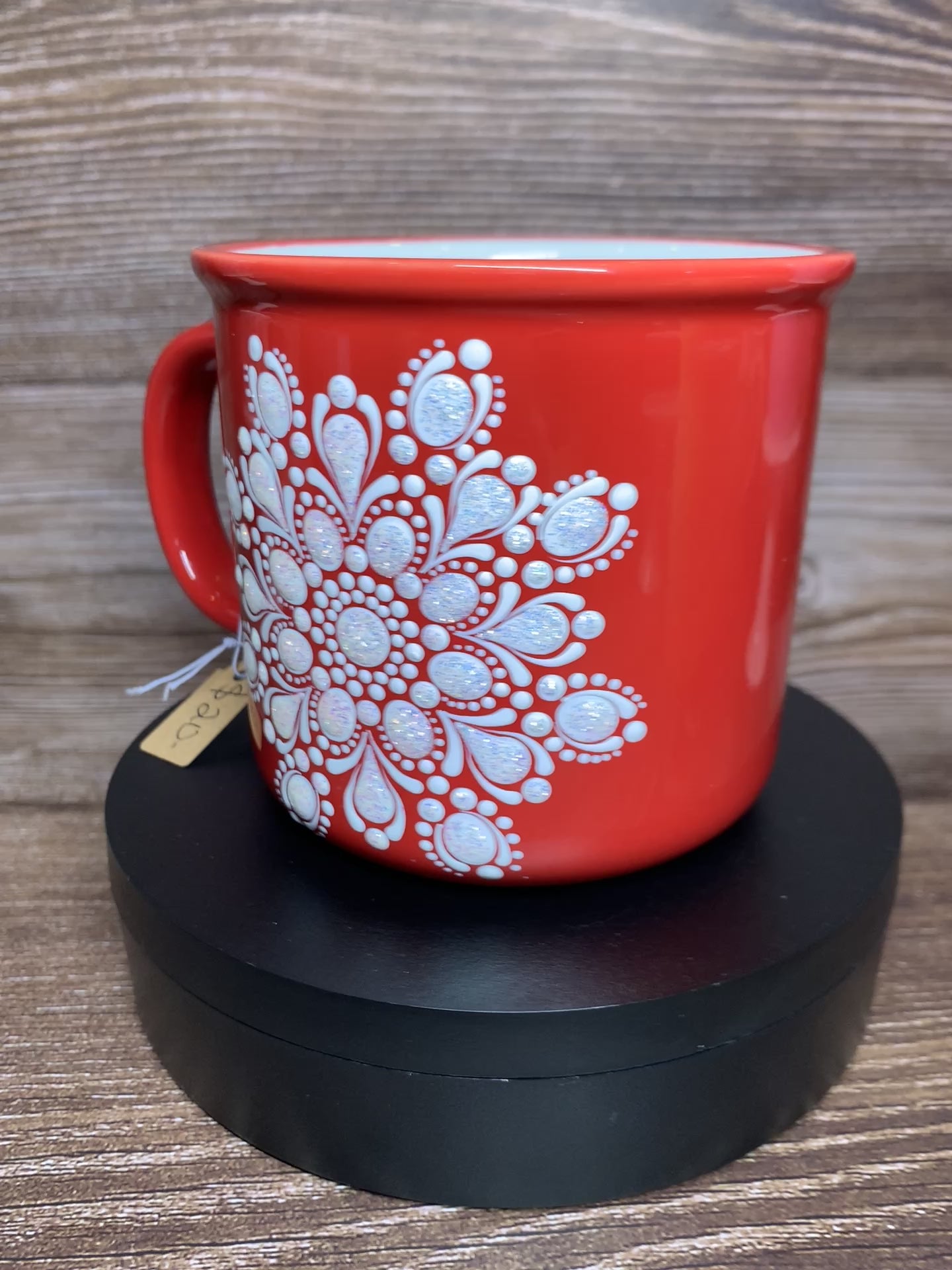 Get your hands on our Red Camp Mug and add some sparkle to your camping experience! This beautiful mug features a white dot art design with a touch of glitter. Perfect for those who like a little extra pizzazz in their daily adventures. Cheers to fun and style!