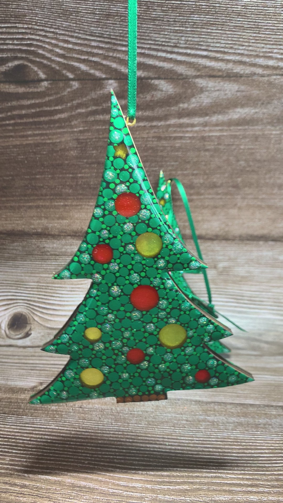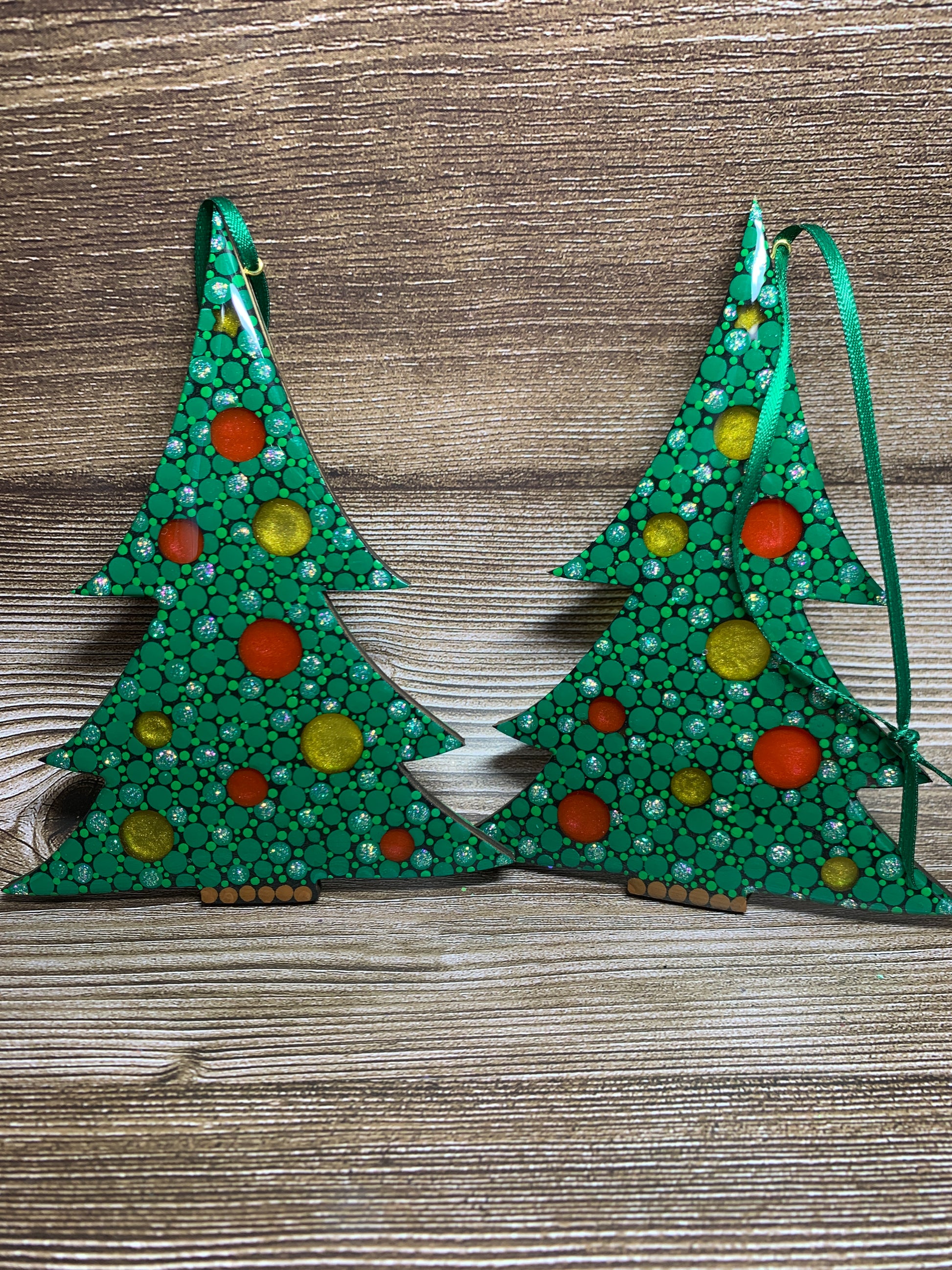 Two resin filled and coated tree ornaments