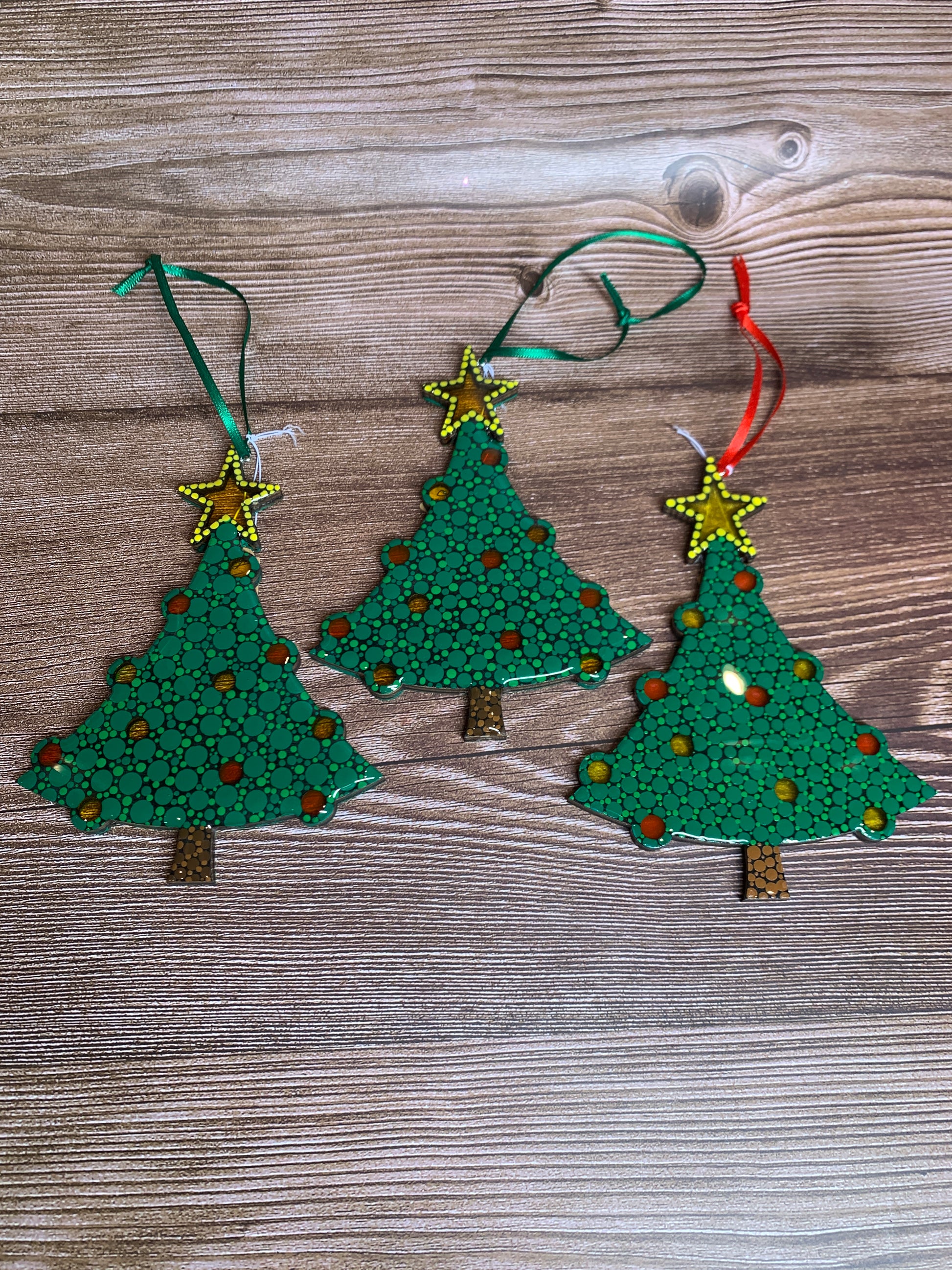 Add a bright, fun touch to your holiday tree with these unique Stained Glass Look Tree Ornaments! Each ornament is hand-dotted with vibrant acrylic paints and filled with colorful epoxy resin for a one-of-a-kind look. Plus, two coats of epoxy resin protect the beautiful art for years to come!