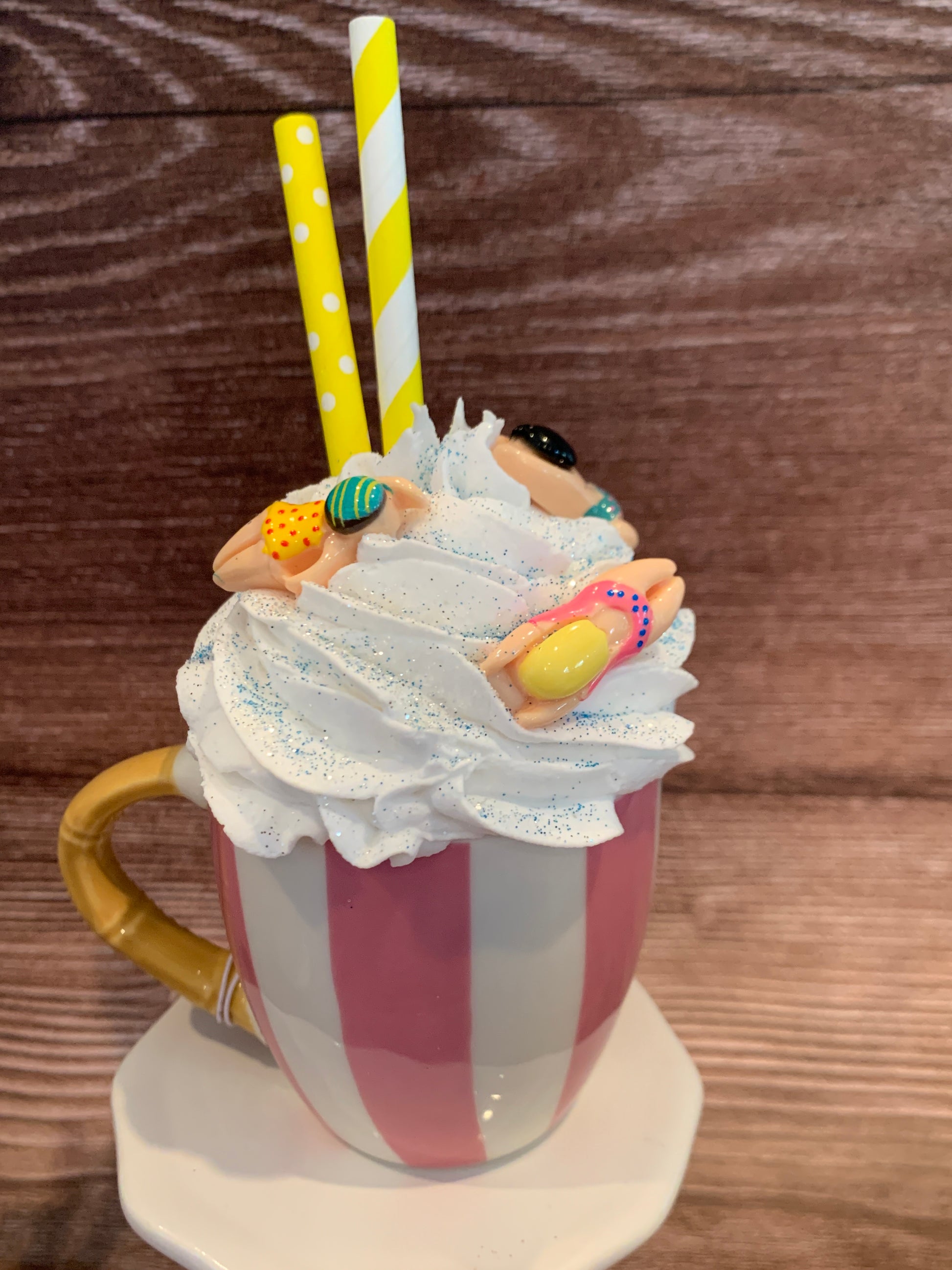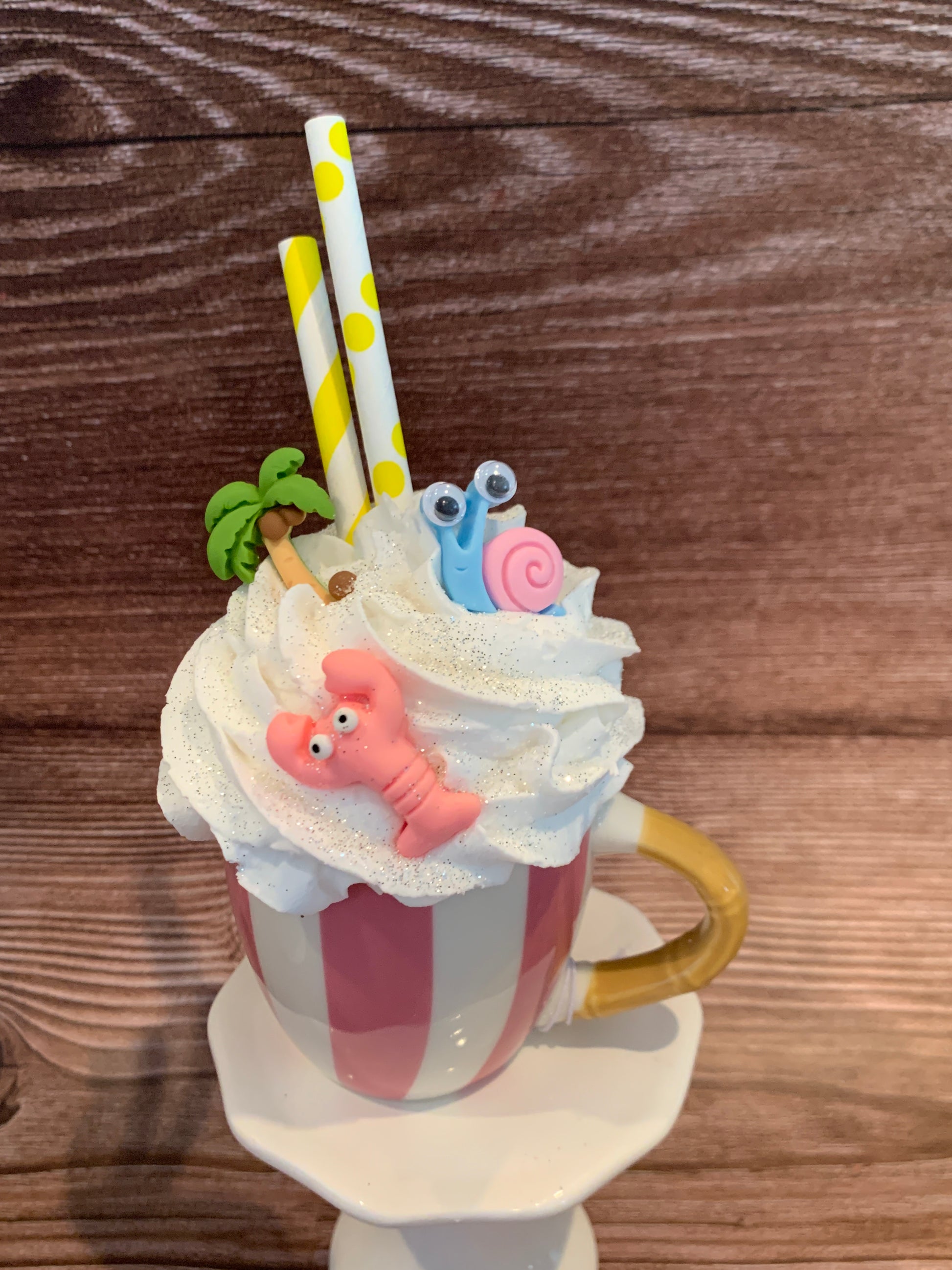 Indulge in a little summertime sweetness with our Summertime Mini Mugs! These playful pink and white mugs are filled with faux whipped cream and topped with delightful summery decorations. Perfect for tier tray decor or adding a touch of whimsy to your space. (And yes, they're calorie-free!)