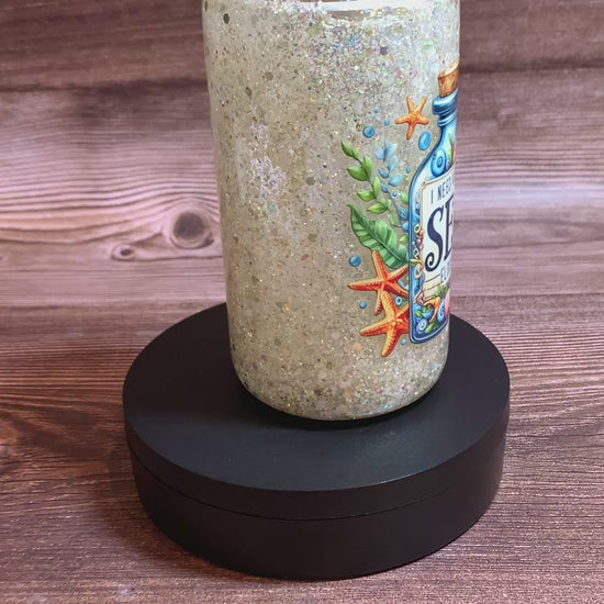 Sip on some "Vitamin Sea" with our 16 oz Snowglobe tumbler with a UVDTF featuring a bottle of our refreshing Vitamin Sea Elixir and sea shells. Quench your thirst while feeling the beach vibes! (No need for a beach vacation with this tumbler in hand!)