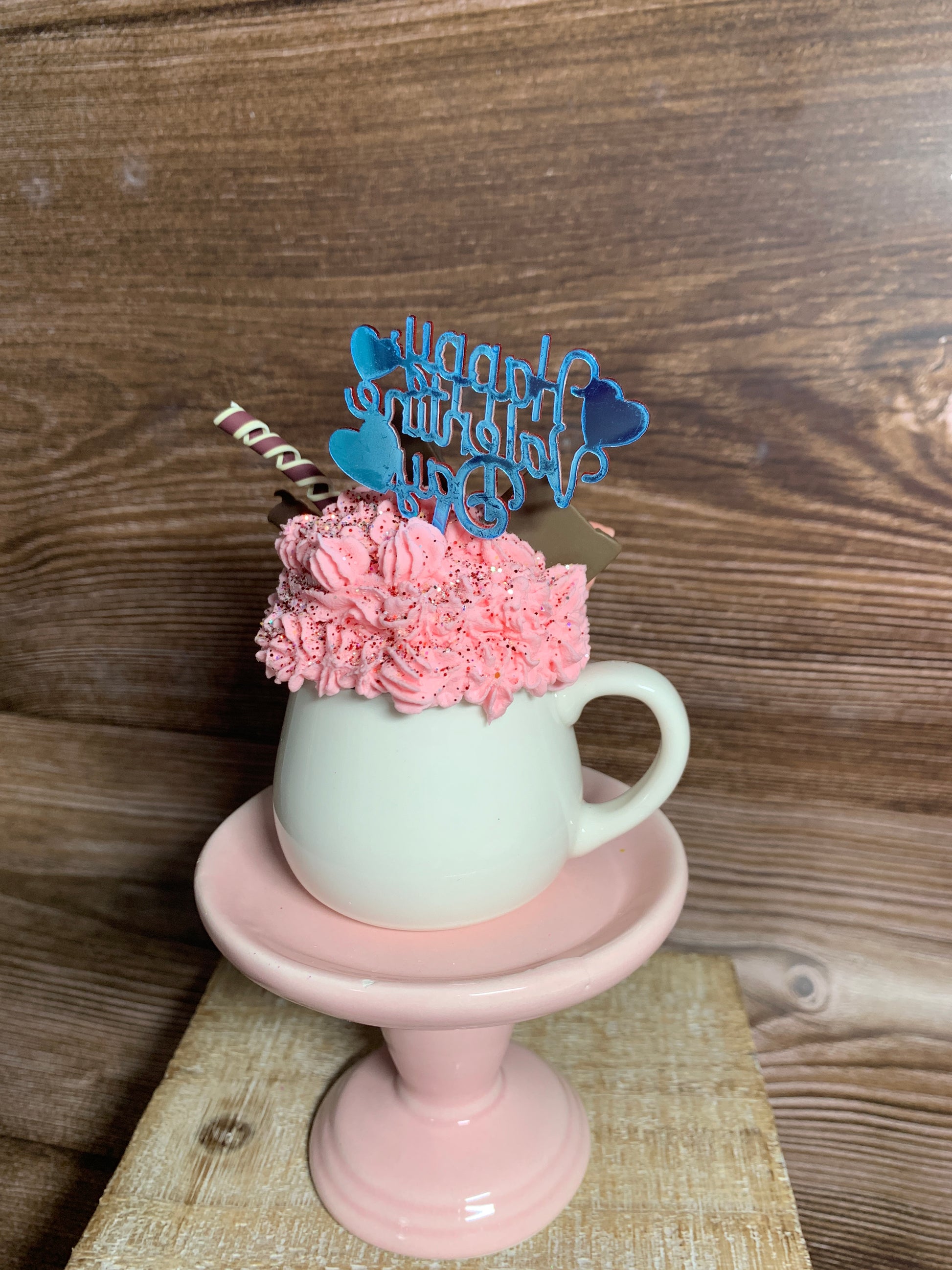 Get ready to fall in love with our White Valentine Mini Mug! This adorable white ceramic mug comes filled with faux whipped cream and is topped with faux chocolates, making it the perfect gift for your sweetie.